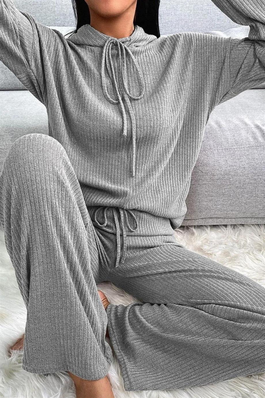 Bella Notte Viskon Gri Kapüşonlu Uzun Kollu İkili takım 7009